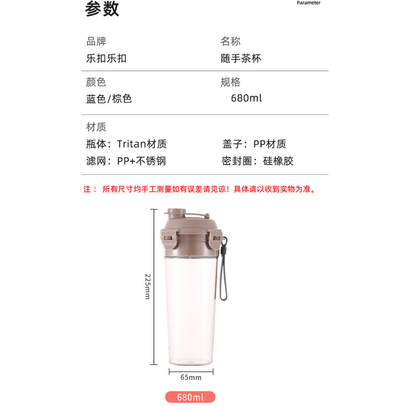 680ml便携Tritan男女运动健身水壶学生带提手塑料泡茶杯【塑料/颜色自选】 |