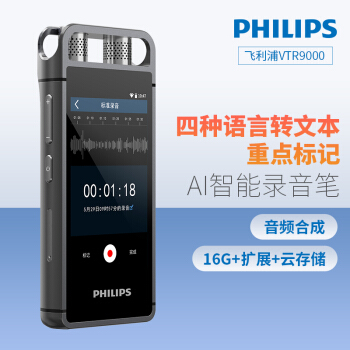 飞利浦(PHILIPS)VTR9000 16G AI智能录音笔 终身免费转文本 录写同步 WIFI 翻译 云空间储存 |