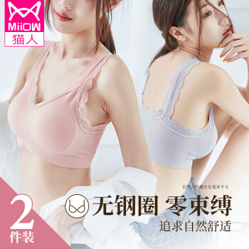 猫人2件装内衣女聚拢美背收副乳调整型胸罩女夏季薄款无钢圈跑步防震防走光睡眠运动文胸 冰灰色+水粉色 |