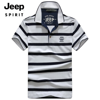 JEEP 短袖t恤男夏季商务休闲男装T恤男士条纹翻立领半袖体恤polo衫上衣打底衫潮流都市 0078白色 2XL |