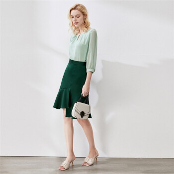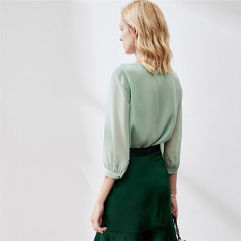颜域薄荷绿圆领雪纺衫女新款秋装减龄宽松显瘦七分袖气质上衣 浅绿 M |