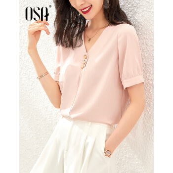 OSA欧莎气质短袖雪纺衫女遮肚子新款夏季欧洲站洋气小衫时尚上衣 粉色 S |