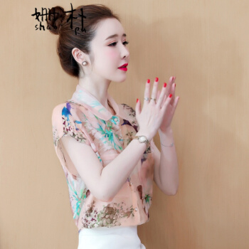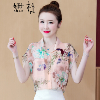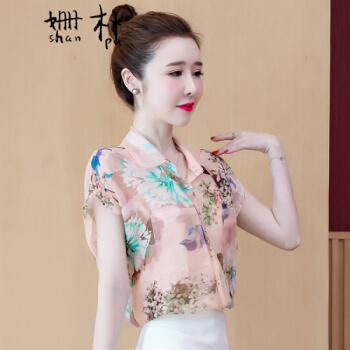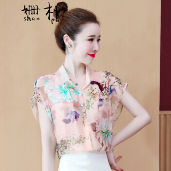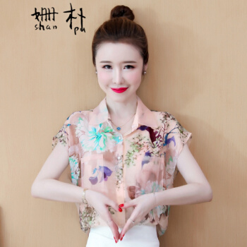姗朴 雪纺衫女夏季新款大码女装港味立体花朵印花雪纺洋气上衣宽松显瘦小衫短袖休闲时尚仙气衬衫女 图片色 L【建议105-115斤】 |