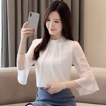 潘歌雪纺衬衫女新款女装夏季韩版白色淑女气质纯色宽松五分袖打底衫上衣女R339 白色 S |