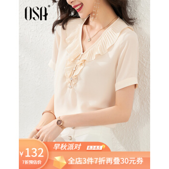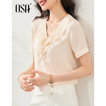 OSA女士短袖雪纺衫夏季新款欧洲站时尚洋气遮肚子小衫上衣 浅杏色 S |