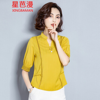 星芭漫 雪纺衫短袖女夏季新款百搭小衫女#510 黄色 L |