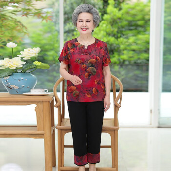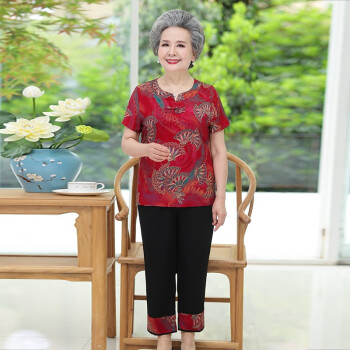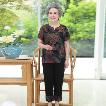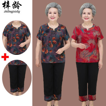 梓龄 中老年女装妈妈装夏季新款奶奶装夏装大码短袖套装60-70岁80老人T恤上衣裤子婆婆衣服 绿色杏叶花 此码勿拍,请拍对应尺码 |