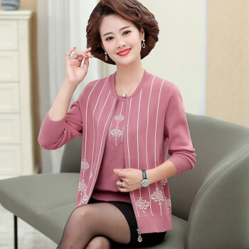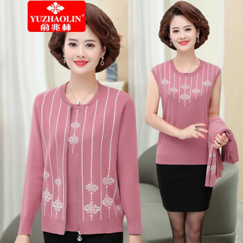 俞兆林中老年人女装妈妈装秋冬装针织拉链长袖外套+t恤两件套装衣服女LY2002 粉色 下单选择正确颜色尺码 |