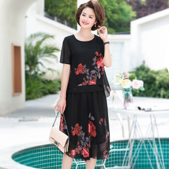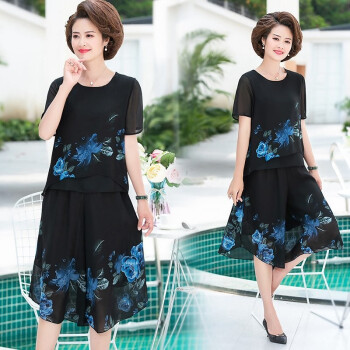 梓龄 中老年女装夏装雪纺两件套装女新款妈妈装洋气T恤中年夏季宽松小衫上衣裙裤 黄花 请拍对应尺码 |