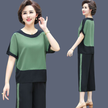 涂蝶幽 妈妈夏装运动服套装两件套新款洋气减龄中老年女装人短袖上衣服女 红色 2XL (105-115斤) |