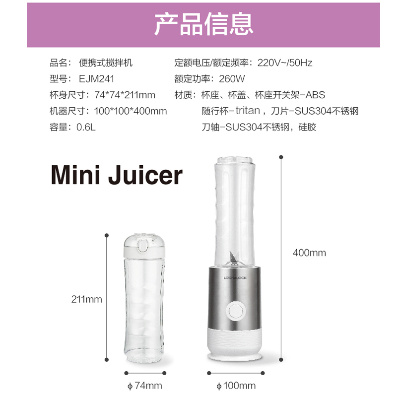 迷你搅拌果汁杯便携式多功能家用小型打汁机【玻璃/图片色】 |