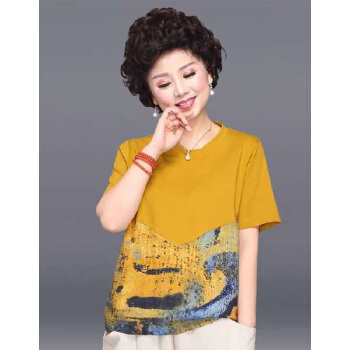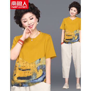南极人 中老年女装夏季新款妈妈套装女大码洋气短袖T恤中年阔太太两件套 N3-GTBF03-735-套装黄色 4XL |
