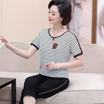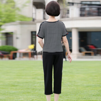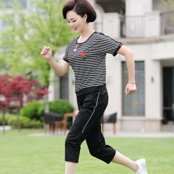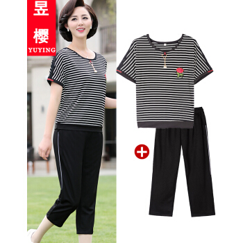 昱樱中老年女装新款夏时尚短袖T恤女上衣阔太太妇女妈妈装大码宽松运动服休闲两件套装女中年女装 黑色 此码勿拍.请拍自身对应码数 |