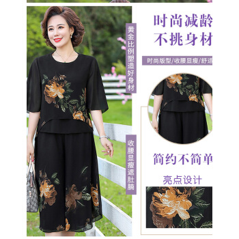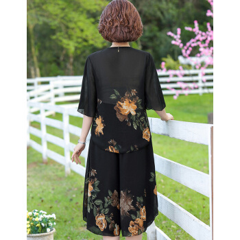 南极人 中老年女装夏季新款雪纺中年妈妈装七分袖碎花洋气减龄两件套 黄色花 3XL(建议120-135斤) |