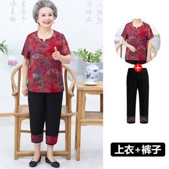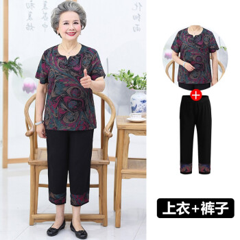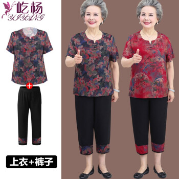 屹杨套装中老年女装妈妈装大码女装新款中老年人夏装女奶奶短袖套装60岁70妈妈T恤上衣老人衣服 1号色 (尺码勿拍,请拍自身对应尺码) |