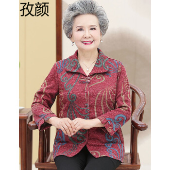 孜颜中老年女装秋装老年人妈妈装衬衫长袖上衣薄外套60-80岁奶奶装春秋季老人衣服 红色单件 3XL(建议110-125斤) |