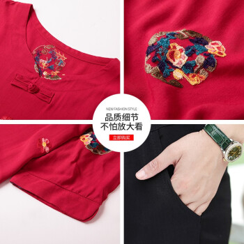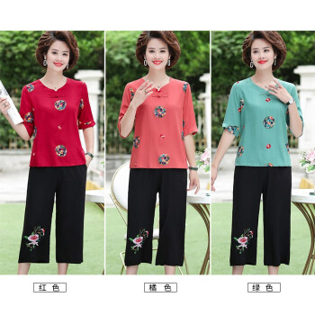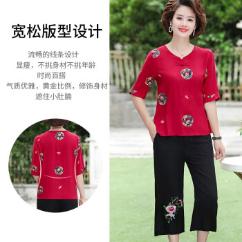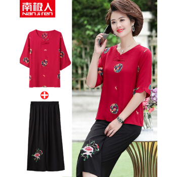 南极人 中老年女装夏季新款短袖妈妈套装洋气减龄棉麻两件套 红色套装 XXXL(建议体重120-135斤) |