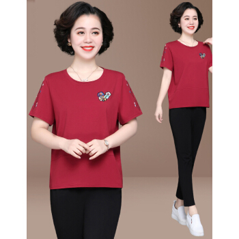 惠珈芸中老年女装夏装两件套短袖T恤上衣洋气新款简约时尚减龄阔太太运动装女大码宽松妈妈装套装 皮红色(7分裤) 此码勿拍.请拍自身对应码数 |