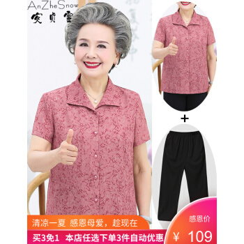 安贞雪中老年女装奶奶装夏装翻领衬衫夏季老年人女士朴素碎花衬衣开衫妈妈装老太太衣服LL3405 红色两件套装 3XL建议125-145斤 |