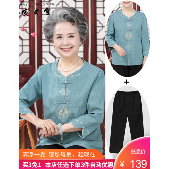 安贞雪中老年女装奶奶装春秋装透气棉衬衫秋季老年人女士刺绣衬衣老太太开衫妈妈装LYFS3426 蓝色两件套装 3XL建议120-140斤 |