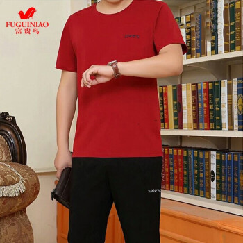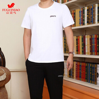 富贵鸟短袖t恤男套装夏天圆领修身半袖打底衫上衣服男装半截袖体恤polo衫 蓝色(短袖+长裤) 4XL(175-195斤) |