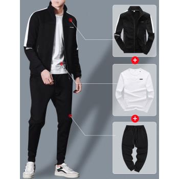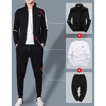卫衣男秋冬季休闲运动套装2019新款立领外套男士秋冬夹克长袖开衫衣服简约修身秋衣韩版大码男装潮牌 1826三件套 XL |