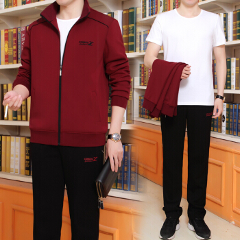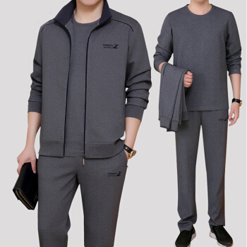 披星狼 中年男士运动套装男春秋冬季三件套长袖大码宽松休闲卫衣开衫中老年人运动服爸爸装晨练跑步 A款灰色(短袖+外套+裤子). 男款 XL125-145斤 |