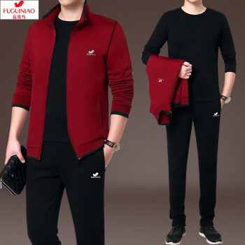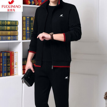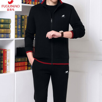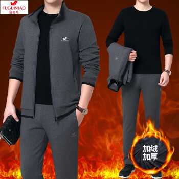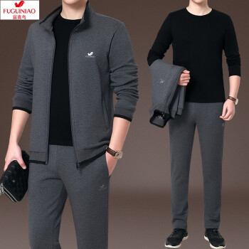 富贵鸟纯棉运动套装男士运动套装跑步服运动健身服休闲套装男三件套运动套装中老年男装秋冬加绒开衫套装男 春秋款2件套-灰色 M 建议体重95-110斤 |