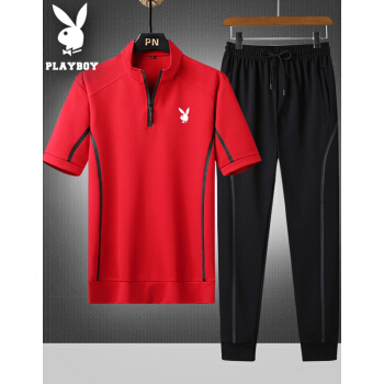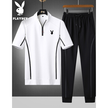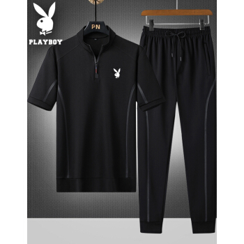 短袖套装t恤男2件套夏季新品短袖立领休闲T恤九分裤衫透气上衣短运动 ATD2868黑色 |