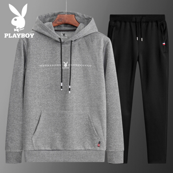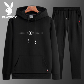 加绒卫衣男套装 秋冬新款加绒连帽套装男士休闲装青年韩版潮流一套衣服卫衣套装男 黑色 ZY1861 L |