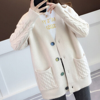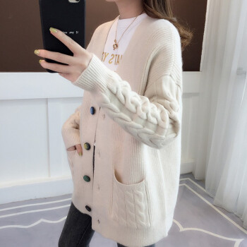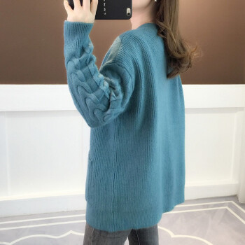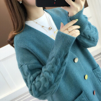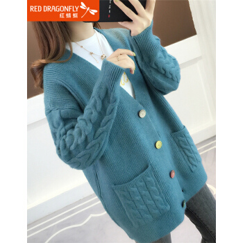 红蜻蜓 春秋新款宽松纯色针织开衫女外搭慵懒长袖秋季毛衣韩版百搭休闲外套女 WL728 蓝色 均码 |