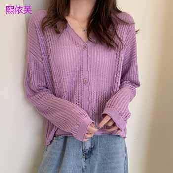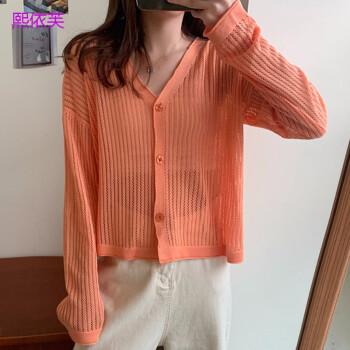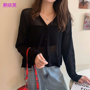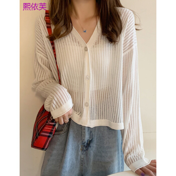 熙依芙针织衫女开衫夏季新款韩版网红短款v领针织衫女薄款镂空洋气防晒开衫外套 白色 均码(80-135斤可穿) |