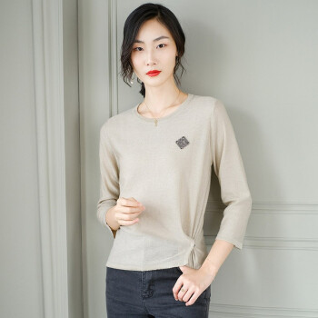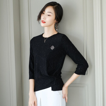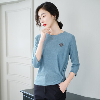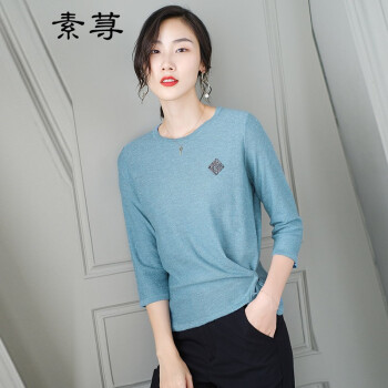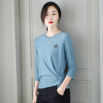素荨针织衫女短款亮丝打底衫秋装宽松上衣七分袖薄款毛衣 蓝色1208 M |