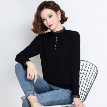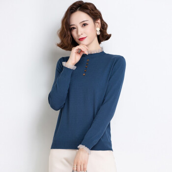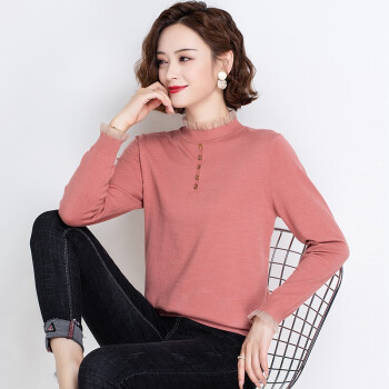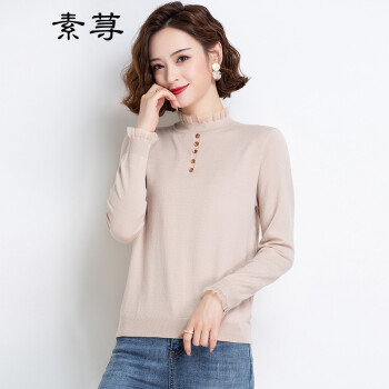 素荨半高领针织衫女秋装新款女装薄款毛衣内搭上衣春秋打底衫 杏色8221 M |