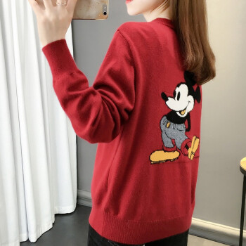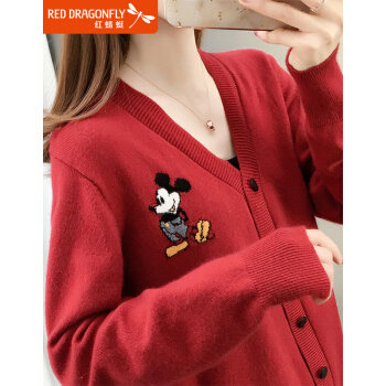 红蜻蜓 新款秋季女装米奇很仙的女士毛衣宽松百搭外穿慵懒针织衫女开衫外套 WL733-2 红色 均码 |