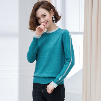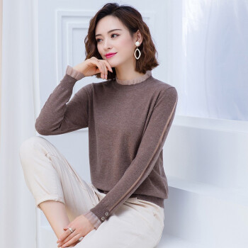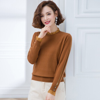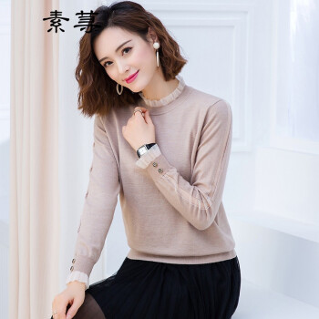 素荨针织衫女短款秋装新款薄款毛衣宽松长袖打底衫蕾丝上衣 浅杏0856 M |