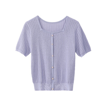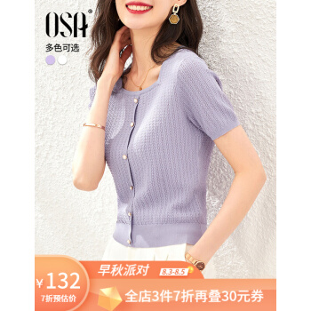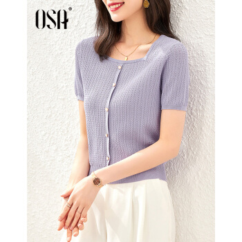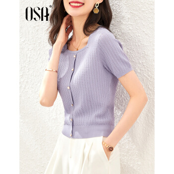 OSA欧莎紫色短款冰丝针织衫女士短袖新款夏季薄款小香风上衣秋 紫色(预售8月8日发) M |