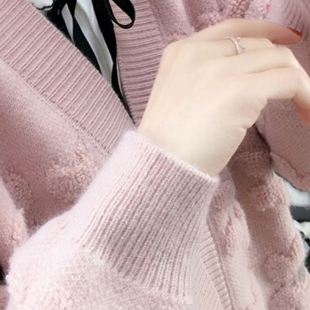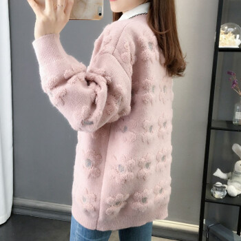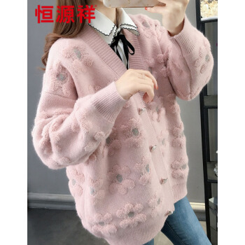 恒源祥针织衫女秋季新品韩版ing潮慵懒风宽松显瘦开衫针织衫女百搭很仙的女外套1487 粉色 M |