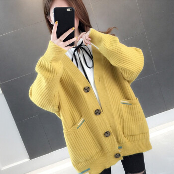 红蜻蜓 针织开衫毛衣女新款春秋韩版百搭宽松慵懒风外套时尚针织外搭上衣 WL738 绿蓝 均码 |