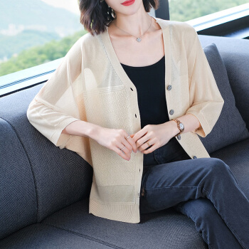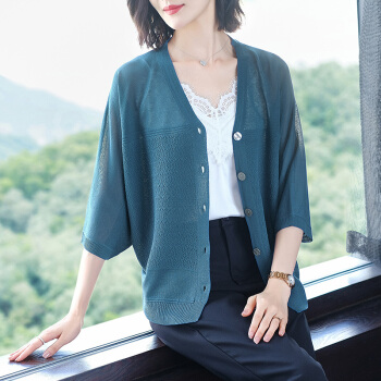 莱帛妮雅小款冰丝针织开衫女披肩夏季外套薄款短款上衣配裙子空调防晒外搭 湖蓝色 M |