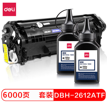 得力(deli)DBH-2612ATF大容量黑色 硒鼓三件套 (2612AT易加粉硒鼓+2瓶墨粉) 适用惠普1020plus佳能 2900/3000 |