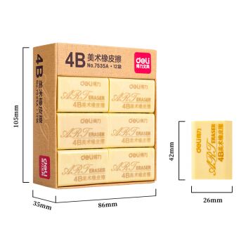 得力(deli)12块大号学生4B黄色考试美术绘图橡皮擦 7535A |