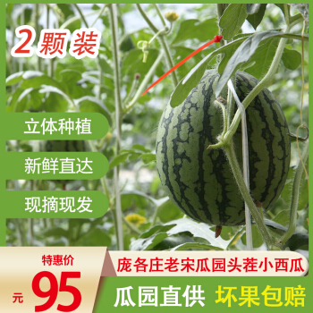 老宋大兴庞各庄精品小西瓜小吊瓜水果袖珍西瓜新鲜水果现摘包邮2个装总重3.5kg-4kg |