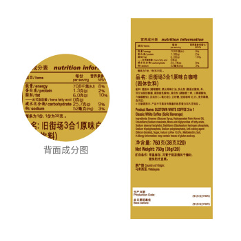 马来西亚进口 旧街场(OLDTOWN)原味20条盒装 三合一速溶白咖啡 760g |