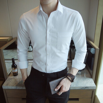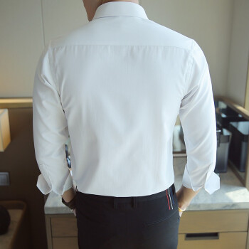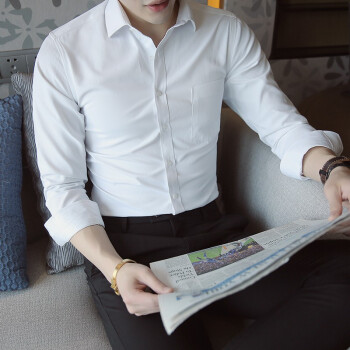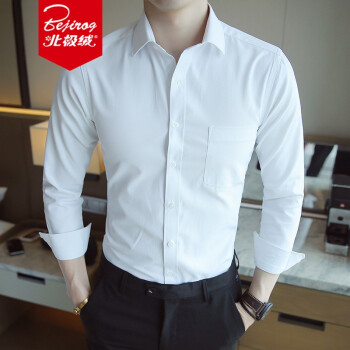 北极绒长袖衬衫男斜纹衬衣青年时尚男装上衣职业装工装大码衣服白衬衫寸衫白衬衣正装 K08-9白色 40 |