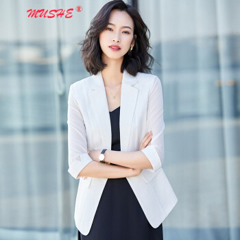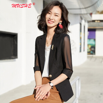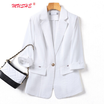 MUSHE原创轻奢 小西装短外套女夏季新款时尚韩版减龄显瘦气质优雅网纱拼接西服上衣外套 白色 M |