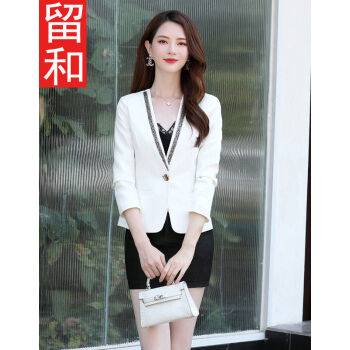 留和 小西装女秋季新款一粒扣修身上衣外套职业范工装上衣小外套女XA013 白色 L |
