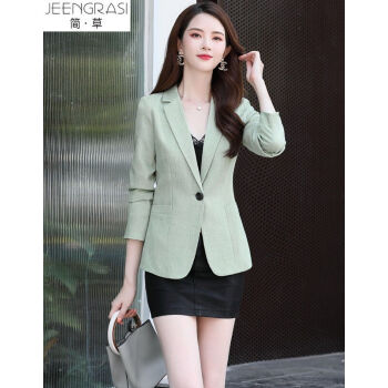 简草 小西装女秋季新款韩版时尚潮流舒适气质修身纯色一粒扣小西服外套女X6005 绿色 M |
