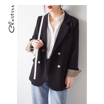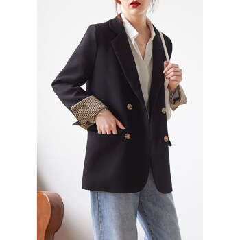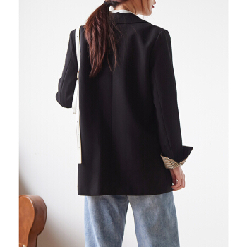 【新品5折 149.5元】黑色小西装女 秋韩版小外套小个子网红短款上衣休闲西服外套X445 黑色 M |