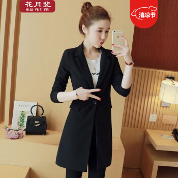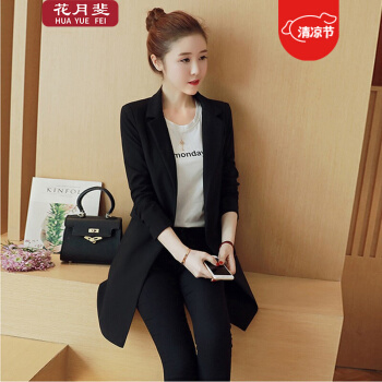花月斐小西装女中长款秋季新款西服时尚简约OL通勤休闲长袖修身中长款西装小外套1701 黑色 L |